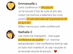 Nous avons eu la chance de recevoir déjà de grandes personnes, comme Thomas d’Ansembourg, Catherine Gueguen, Lise Bourbeau, André Stern, Emmanuelle Piquet, Florence Servan Schreiber,  David O’Hare, etc !
