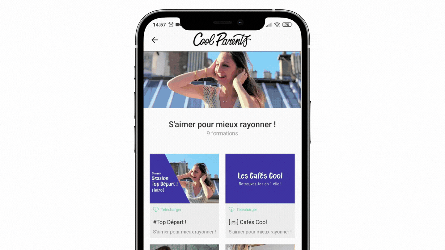 Directement dans votre appli ou sur votre ordi, retrouve tes 10 sessions de vidéos : un format fun et léger pour rire, pleurer, faire le plein d’énergie !