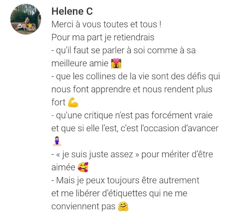 • Réellement accepter de ne pas être parfait et être fier de toi ?