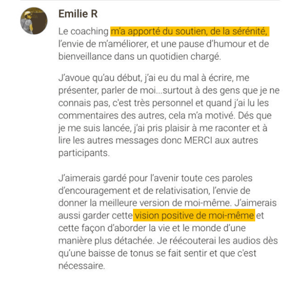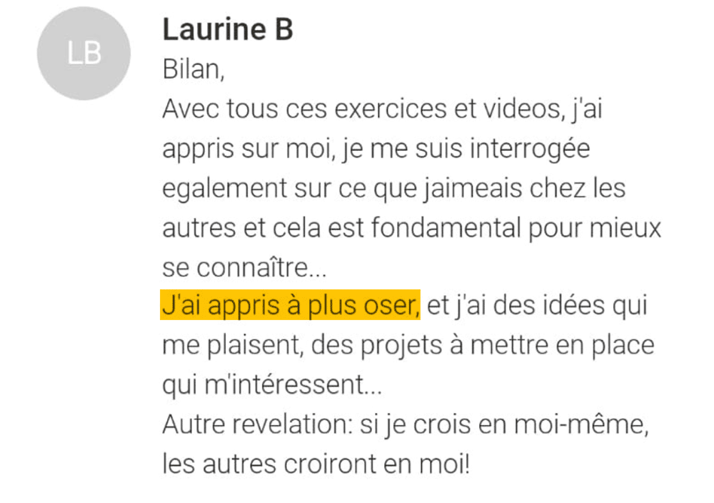 Oui ! Pour entreprendre un travail efficace sur soi-même, il est essentiel d’être vraiment impliqué dans la démarche, d’avoir envie d’y consacrer du temps et de l’énergie. C’est pourquoi tu as 2 vidéos et 30 jours pour changer d’avis. Pour cela, c’est simple : tu nous envoies un mail et on te rembourse dans les 7 jours.