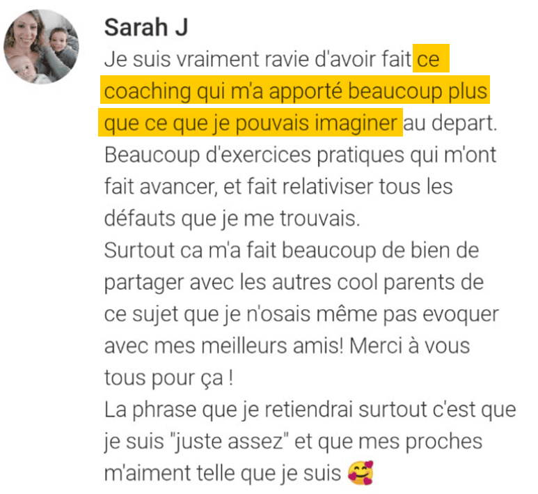 • Que tu n’es pas assez bien : “pas assez bon parent”, “pas assez bon au boulot”, …