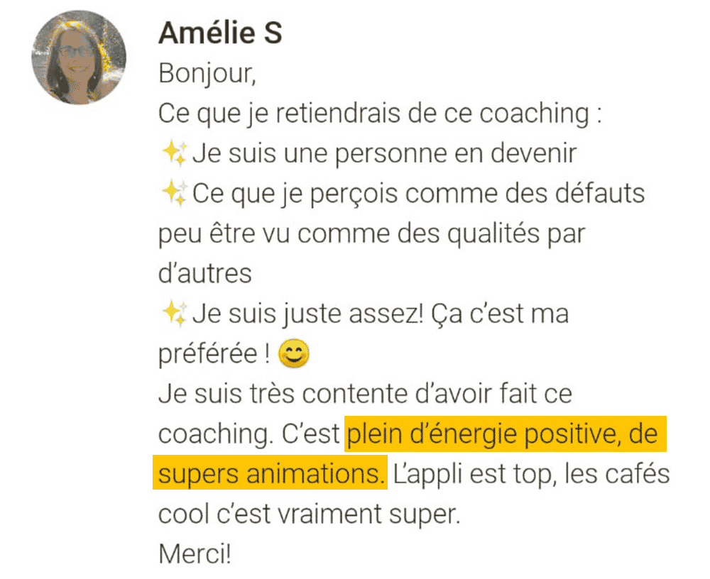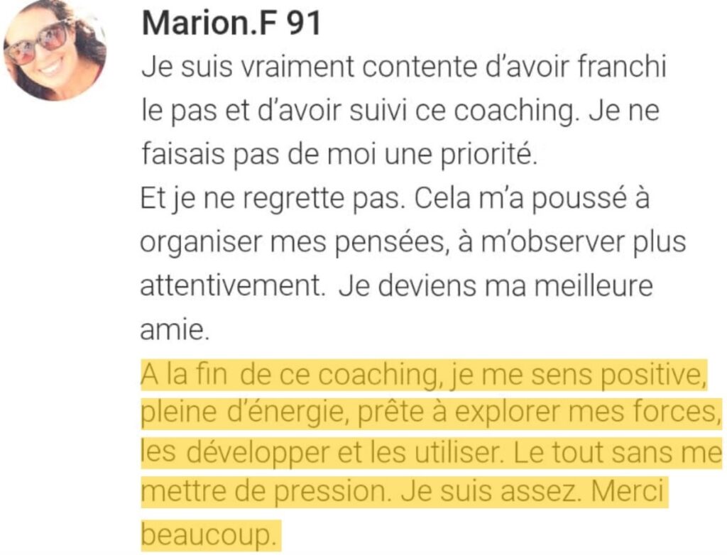 Même si on peut très bien continuer à suivre le coaching en étant en vacances, tu as aussi le droit de faire une pause ! Tu as accès au coaching pendant 365 jours, à toi de gérer ton temps. Comme ça, tu gères selon tes disponibilités.