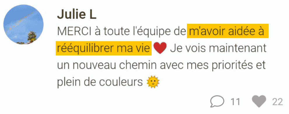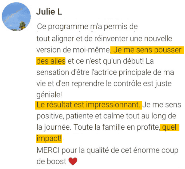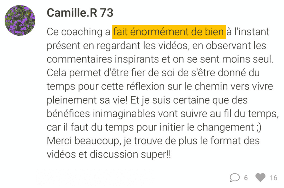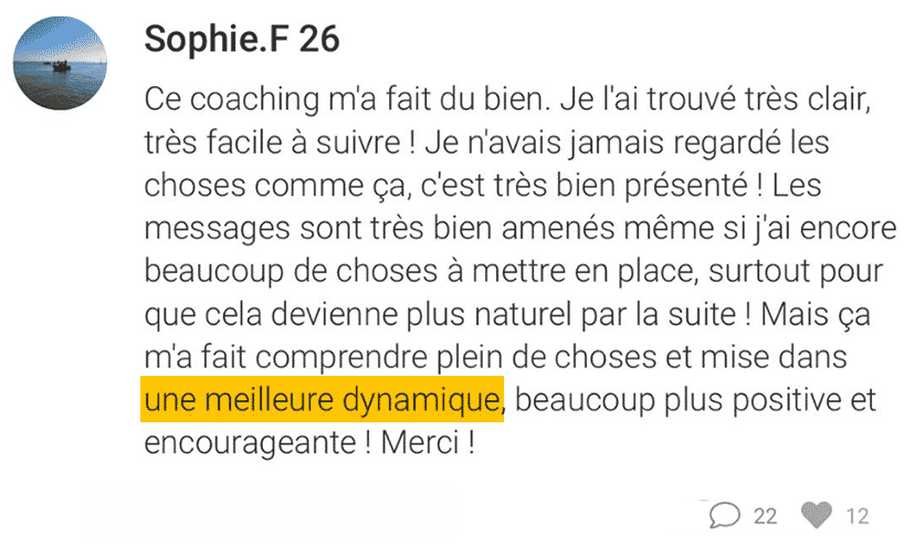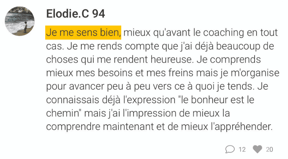 Oui, tu as bien compris : pas besoin de TOUT changer dans ta vie (tes Ă©tudes, ton travail, ton conjoint…) ni de repartir de zĂ©ro ! Ce n’est pas le but de ce coaching.