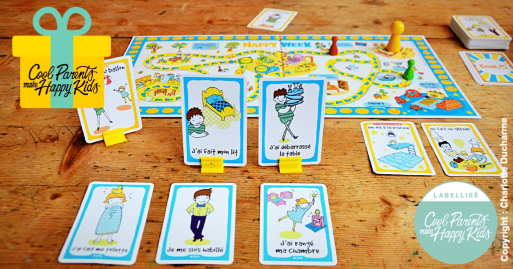 Happy week, c’est un jeu qui va vous plaire ! Original et bien conçu, ce jeu transforme les tâches quotidiennes en un plaisir pour toute la famille, et permet même à notre enfant de gagner en autonomie. Bref, c’est un jeu qui se joue dans la vraie vie, imaginé par Nathan et Claude, deux entrepreneurs sociaux et inventifs. On adore !