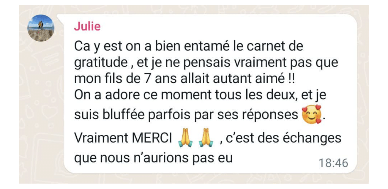 • Plus on cultive la gratitude, plus on est capable de voir le positif dans le quotidien, chez nous et chez les autres !