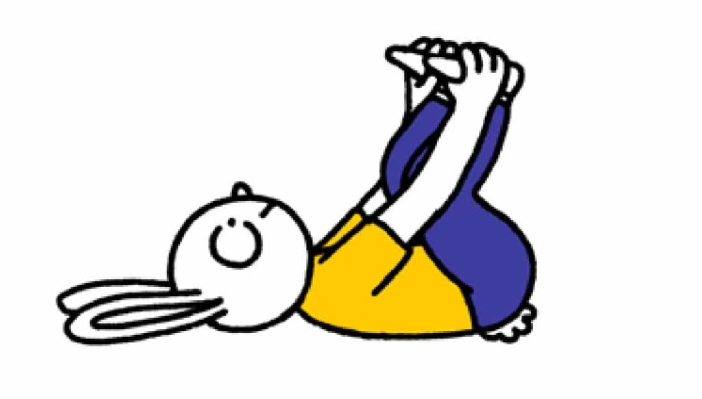 Ici, les pieds reposent par terre. J’imite le papillon avec ses antennes, puis je bats des ailes en bougeant les genoux de haut en bas, pour aller me poser sur une belle fleur. Lorsque j’en ai envie, je me referme : la tête rejoint les pieds et on respire calmement. Cette posture fait du bien à mon corps et à ma tête avant la nuit.