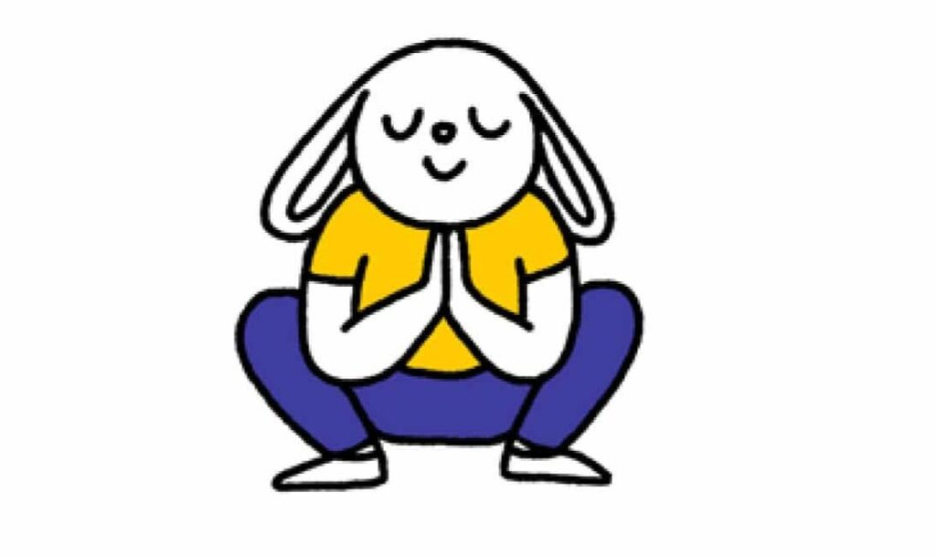 Accroupi, j’ouvre les genoux, je fais deux, trois bonds si j’ai envie. Puis, je m’immobilise, je suis calme et tranquille comme la grenouille qui observe. Je mets les paumes de mes mains l’une contre l’autre, c’est le Namaste. Je prends 3 grandes respirations, du ventre jusque dans la poitrine.