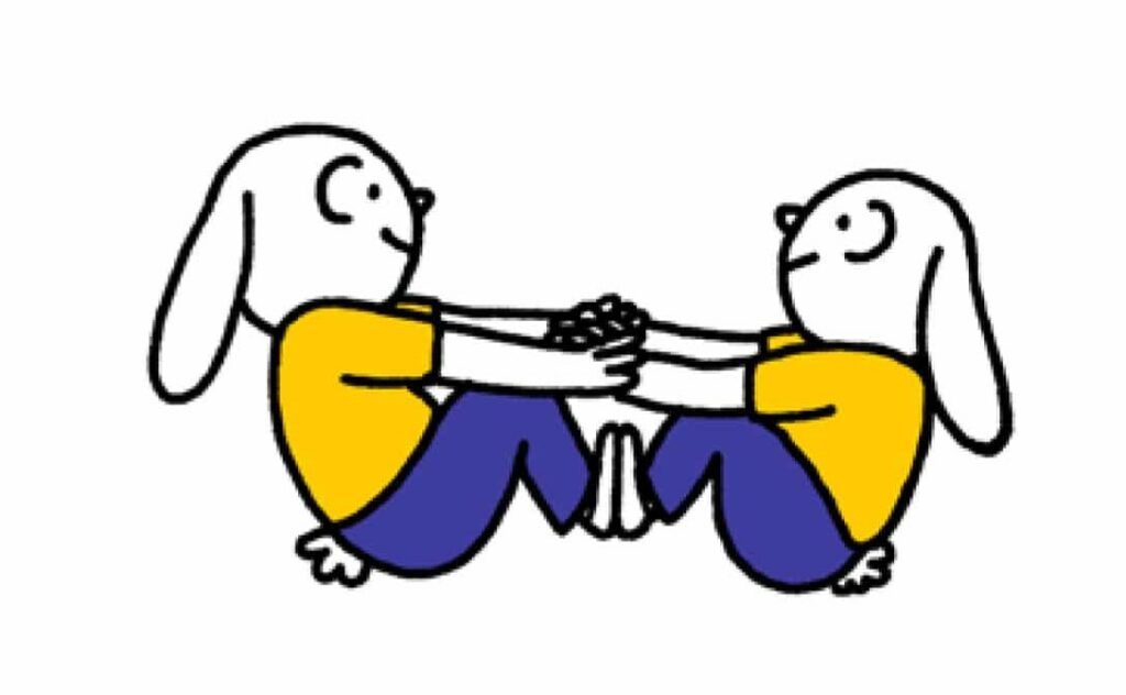 J’attrape les mains de mon partenaire, les pieds se touchent et je tends les bras et les jambes. Je pousse dans les pieds. À deux, on est parfois plus forts pour manoeuvrer le navire sur les flots.