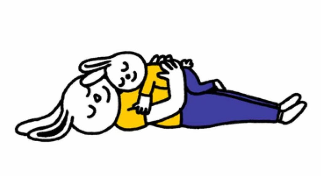 Un moment câlin pour respirer profondément… Je sens mon ventre qui se gonfle et se dégonfle, comme une vague qui va et qui vient. Je ferme les yeux si je veux. J’imagine que je vole pour revenir jusqu’à chez moi après cette belle aventure.  NB : Je peux pratiquer le tapis volant tout seul sur mon tapis aussi!