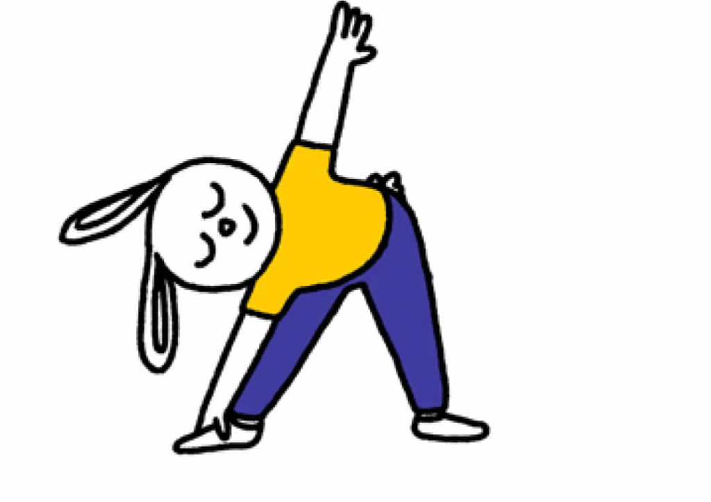 À partir du guerrier, je tends ma jambes avant, je bascule mes bras tendus vers la droite, comme un moulin. Mon corps forme un triangle, comme une belle planche à voile, je flotte en me laissant porter par le vent. Je le refais en inversant, avec la jambe gauche.